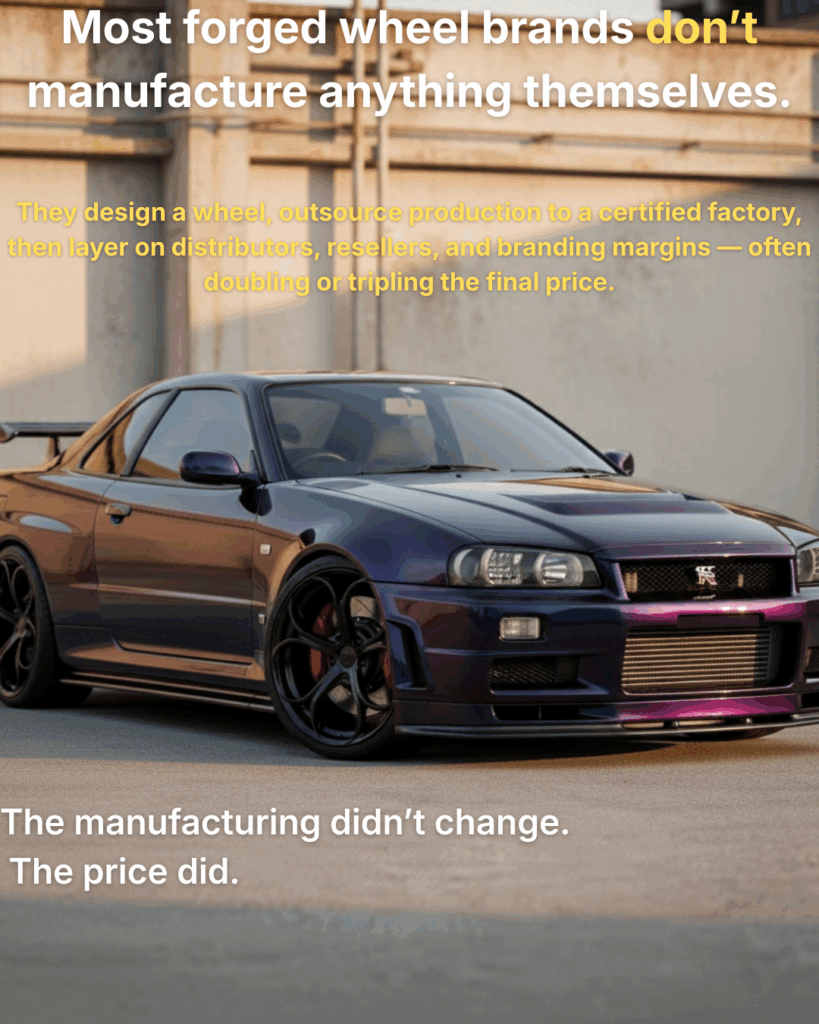 Premium forged wheels are usually priced high because of branding, distribution layers, retail markups, and marketing — not engineering.